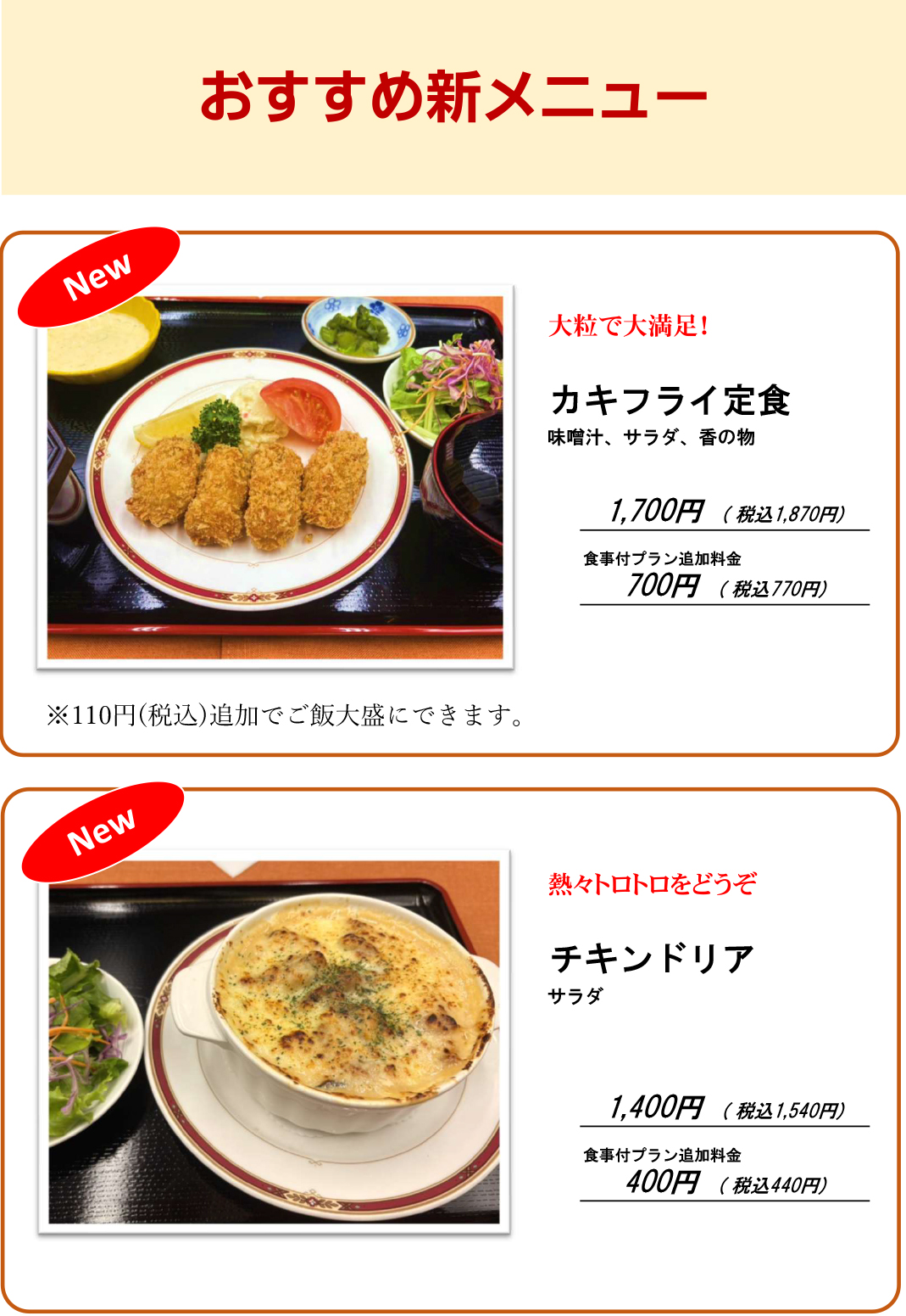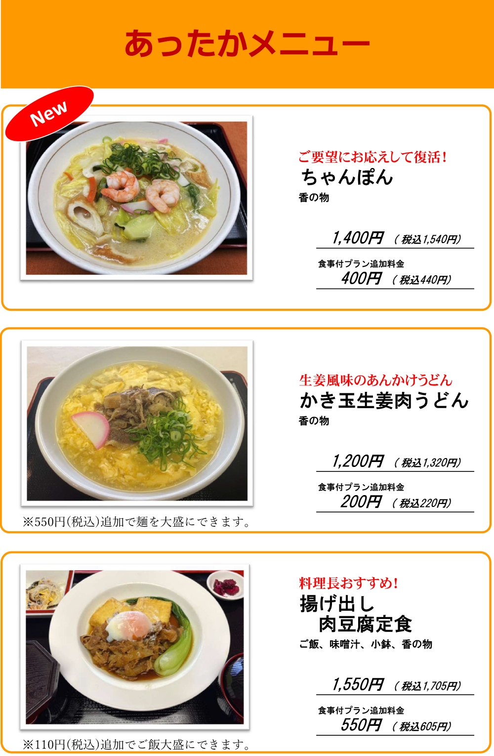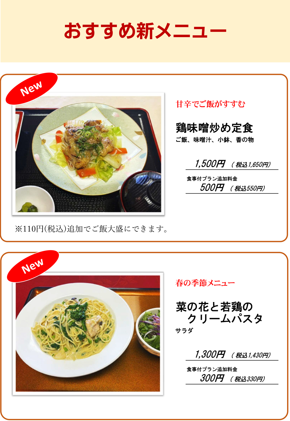 料理長のおすすめを始め、季節ごとの各種メニューを取り揃えております